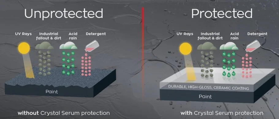 In short, a Ceramic Coating adds additional protection to your car’s exterior and helps keep it looking like-new with comparatively minimal maintenance. The coating achieves this result by making your vehicle more resilient and easier to clean. Here are the main benefits: